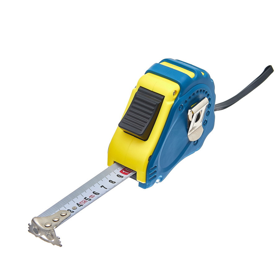 Ударопрочный обрезиненный корпус из ABS-пластика, стойкая к излому усиленная стальная лента с матовым порошковым покрытием, механизм возврата с «автостопом», встроенный амортизатор, подвижный зацеп с магнитом.