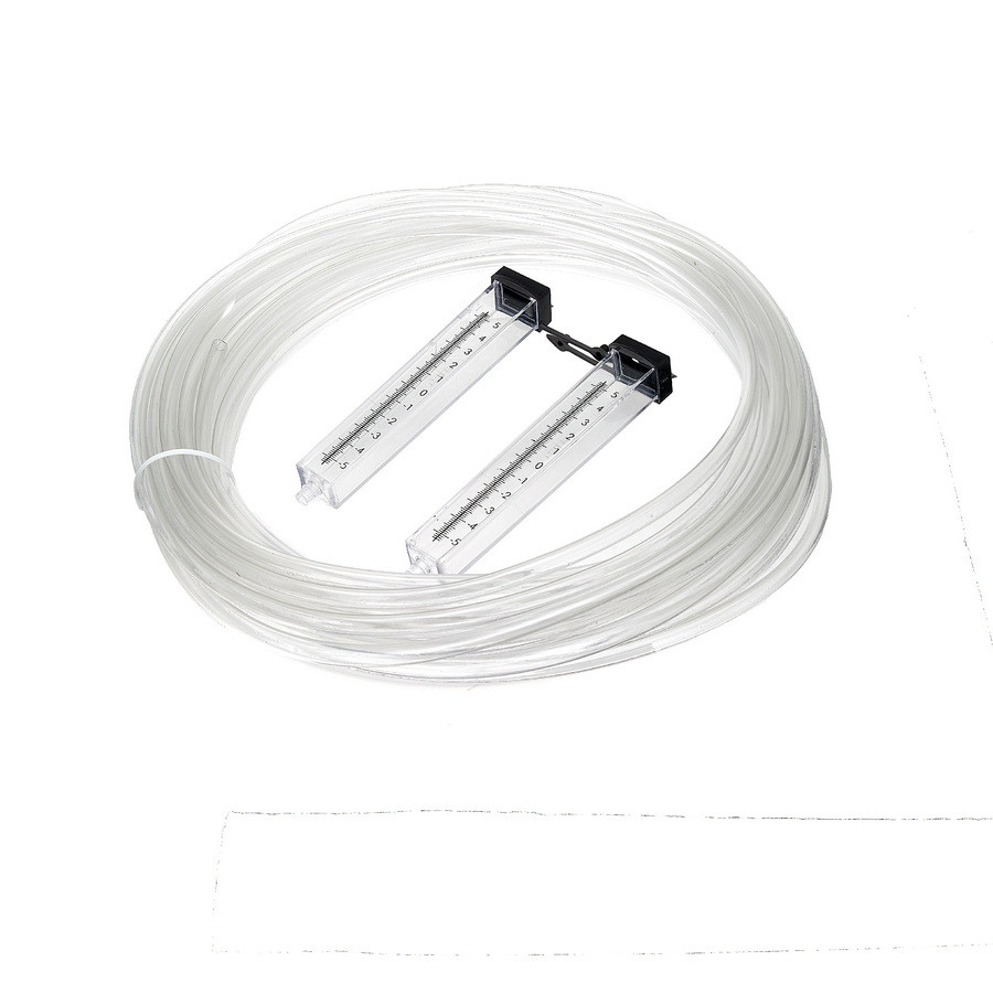 Предназначен для определения уровня горизонтальности при строительстве зданий, устройстве фундаментов, монтаже конструкций и т.п. Представляет собой два сосуда со шкалой, соединенных прозрачной трубкой из ПВХ, заполненных жидкостью. Принцип действия: работает по принципу сообщающихся сосудов. Установившийся на разных отметках уровень воды в обеих колбах указывает точки абсолютно горизонтальной линии. Преимущества: герметичная конструкция колбы (благодаря клапану-пробке можно быстро привести прибор в рабочее состояние, нет необходимости сливать жидкость после использования); нестираемая шкала с крупными цифрами. Длина: 10м. Внутренний диаметр 6мм, шкала колбы 100мм.