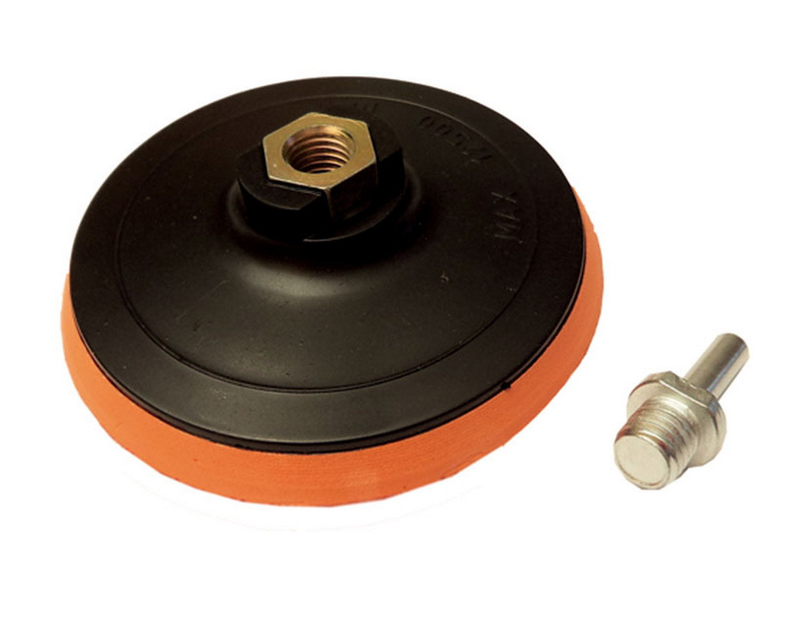 Применяется как съемная насадка-переходник для шлифовальных, полировальных машин и дрелей. Служит основанием для закрепления абразивных шлифовальных кругов диаметром 115 мм с помощью липучки. Комплектуется переходником для дрели с гайкой М14 на хвостовике.