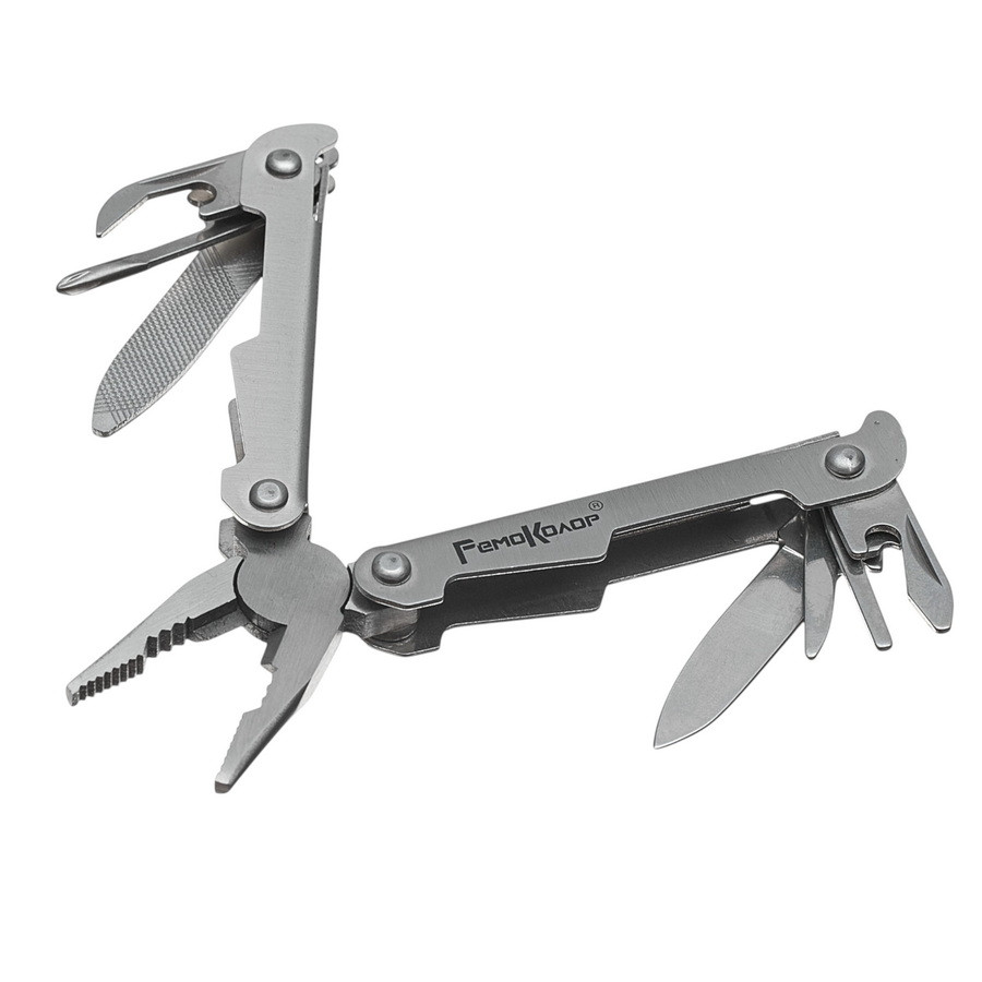 В комплект входят: приспособление для зачистки проводов, консервный нож, захват для цилиндрических деталей, открывалка для бутылок, кусачки для проволоки, отвертки SL 3 шт., отвертка PH2, плоскогубцы, ножи 2 шт., напильник.