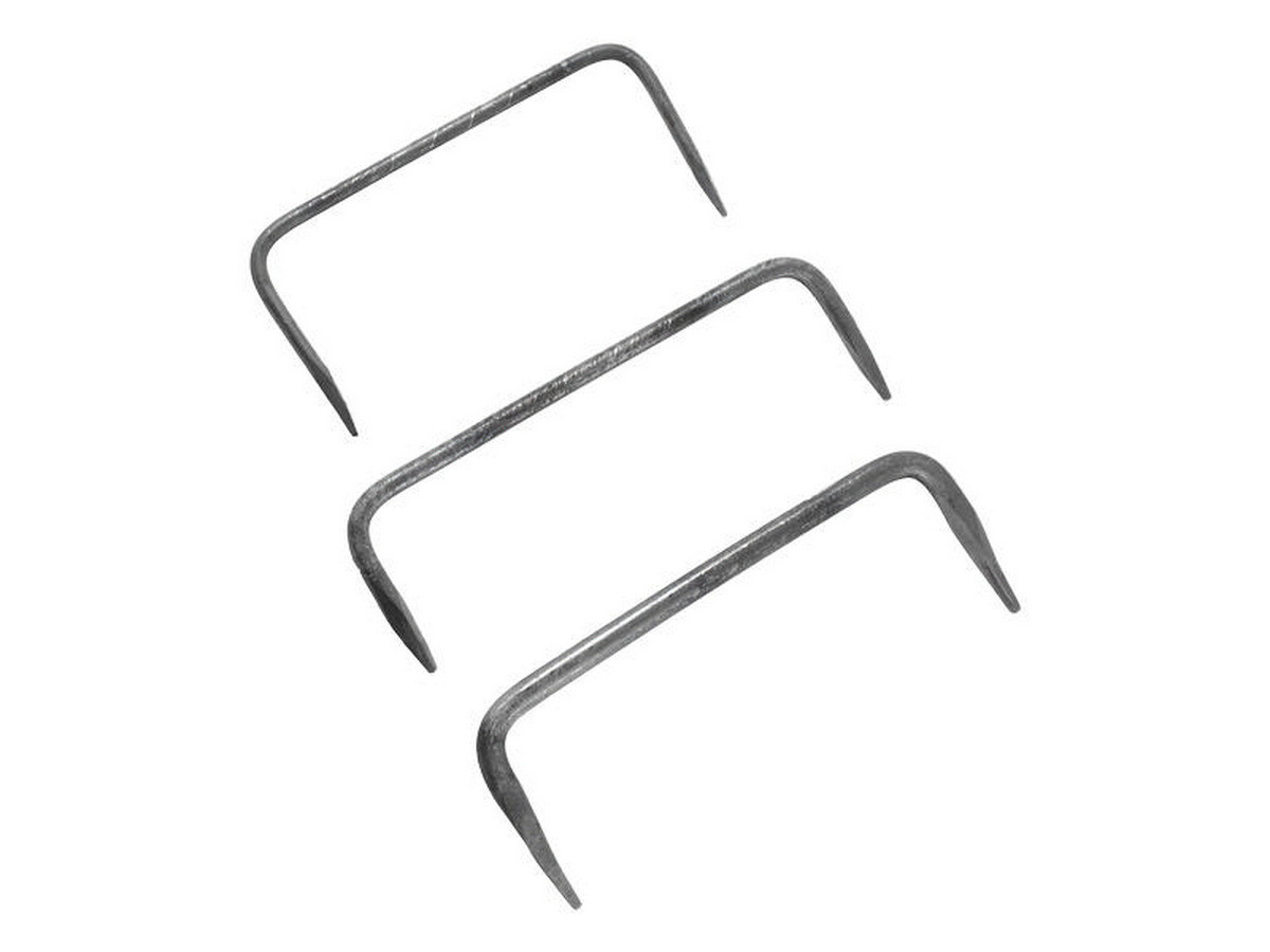 Конструктивно строительная скоба имеет П-образную форму. Верх изделия - “спинка”. по бокам - “ножки”. Длина спинки может находиться в достаточно больших пределах, от 150 мм до 500 мм. Высота ножек колеблется в пределах 60 мм - 80 мм. Эта длина оптимальная для того, чтобы ножка плотно вошла в деревянное основание и не расколола его. Для предотвращения ослабления скрепления, чтобы ножка не могла выйти из основания на ней могут выполняться насечки. Основание ножки скобы заостренное, в форме жала. Угол скобы с месте перехода спинки в ножку расплющивают ковкой. Это создает ребро жесткости, предотвращающее изгиб скобы во время забивки и под влиянием эксплуатационных нагрузок.