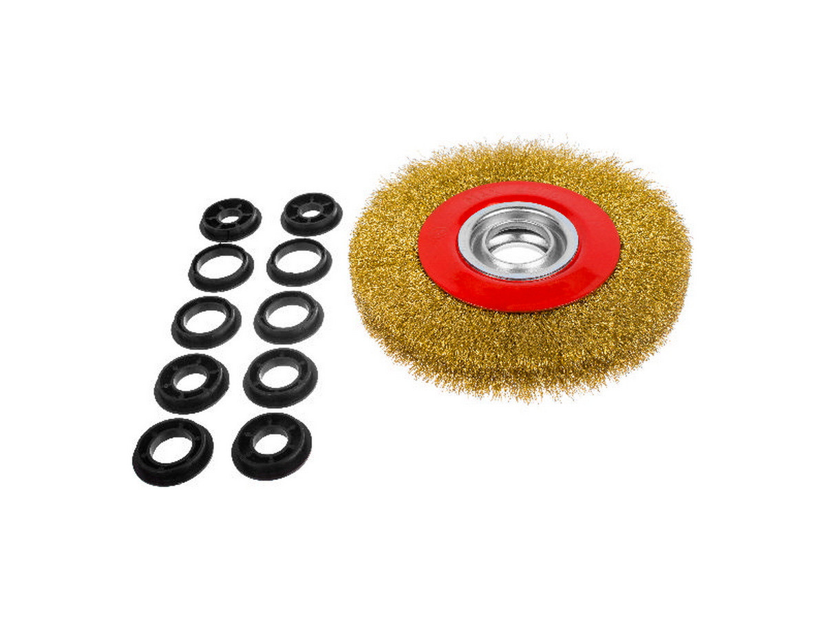 Щетка-крацовка дисковая, усиленная, переходные кольца d=25,22,19,15,12 мм - 2 шт, d=150мм - 45-2-615