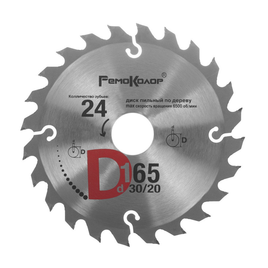 Диск пильный по дереву, переходное кольцо 20/22/25,4мм, 165x30х24T - 74-1-164В наличии