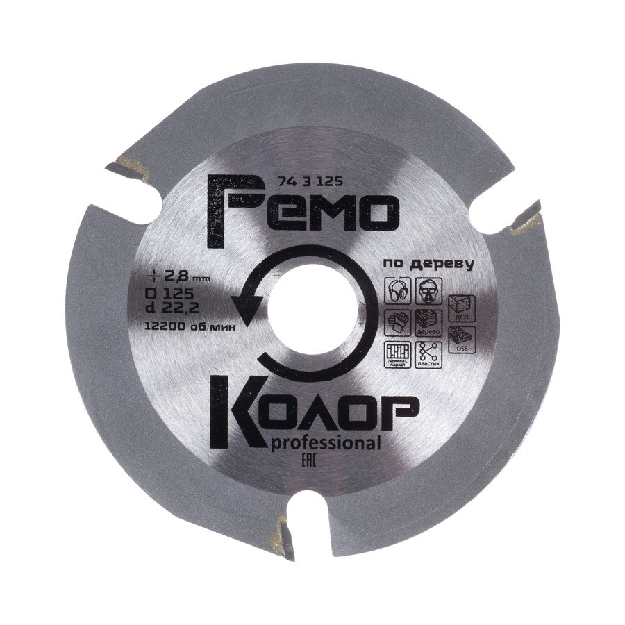 Диск пильный по дереву для УШМ, 125х2,8х22,2мм, 3 зуба - 74-3-125