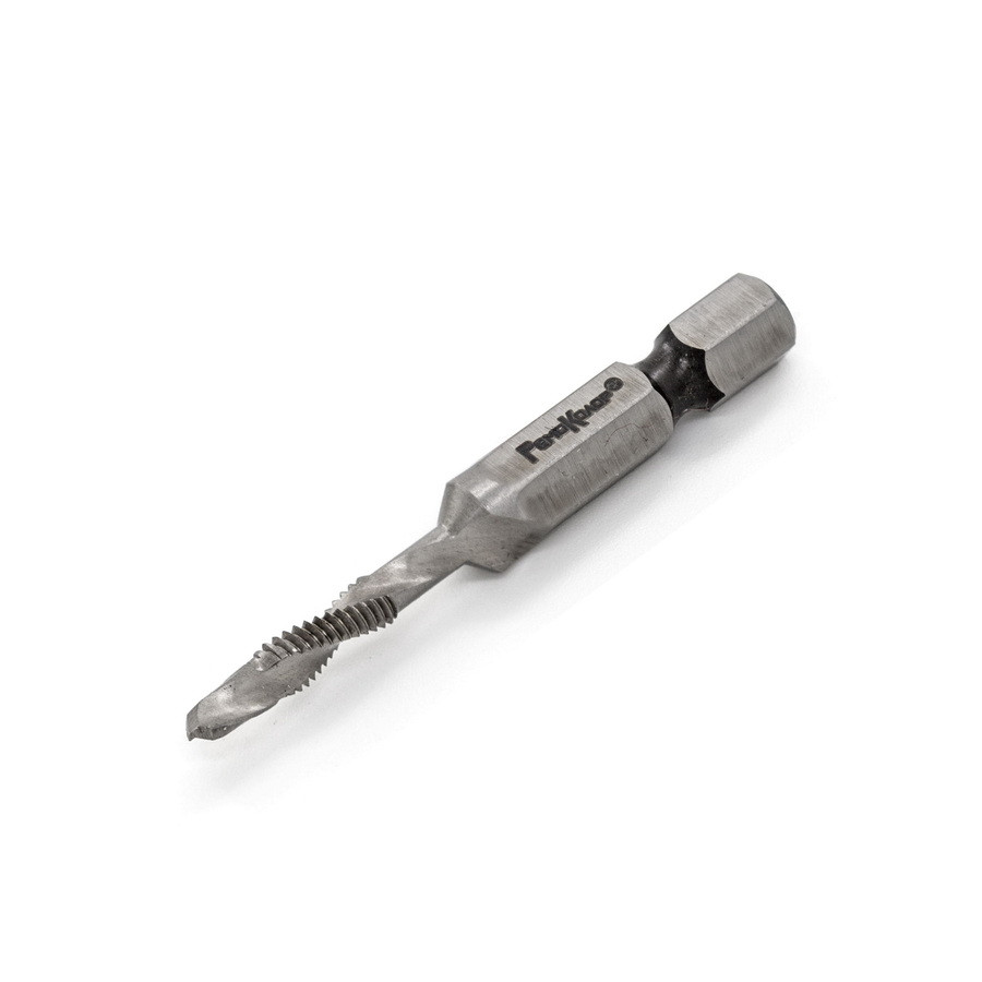 Сверло-метчик комбинированный для сквозных отверстий и нарезания резьбы. Сверление и нарезание резьбы производится за один рабочий проход, очистка резьбы - на обратном ходу. Для обработки листовых материалов и профилей из легированных и не легированных сталей с пределом прочности на растяжение до 900 Н/мм2 и цветных металлов. Изготовлено из быстрорежущей стали Р6М5, шлифованное. Шестигранный хвостовик 1/4' может использоваться со стандартными магнитными держателями для бит, это позволяет быстро менять инструмент. Хорошо фиксируется в кулачковом патроне без проскальзывания.’. Резьба метрическая DIN ISO 13, правосторонняя.