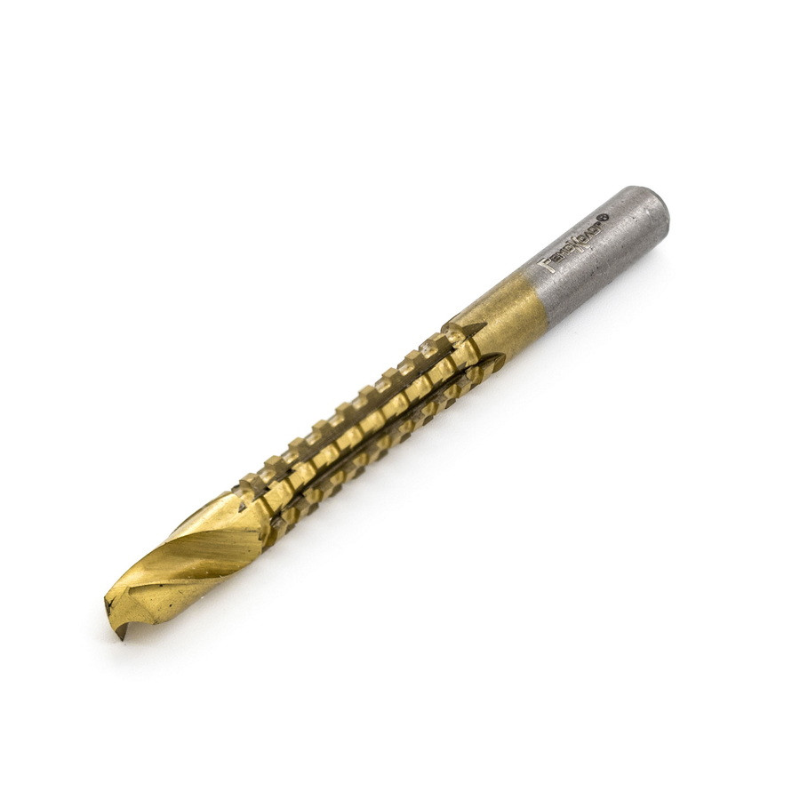 Сверло-фреза универсальное предназначено для сверления отверстий в листовых материалах из металла, пластмассы, древесины, фанеры. Изготовлено из инструментальной стали HSS и имеет нитридтитановое покрытие, снижающее трение во время работы, что обеспечивает длительный срок службы оснастки. Сочетает в себе функции сверла и фрезы. Сверлильной частью выполняют отверстие, а его расширение до необходимой формы и величины выполняют фрезой, которая является боковой гранью инструмента.