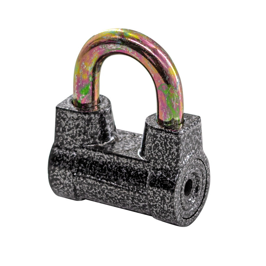 Корпус замка - алюминий + антикоррозийное порошковое покрытие, дужка - закаленная углеродистая сталь, 3 ключа - сталь; цилиндровый механизм под дисковый ключ; автоматическое запирание без использования ключа. Применение: для запирания подсобных помещений, гаражей, калиток, оконных решеток, почтовых ящиков, чемоданов с целью защиты от взлома и воров